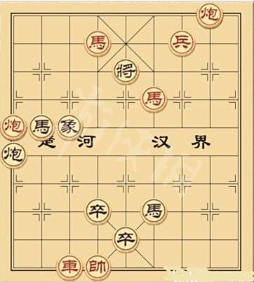 残局一:车5平6,马2退4,马4退5,马5退7,马7进8,炮9进三格,将军。